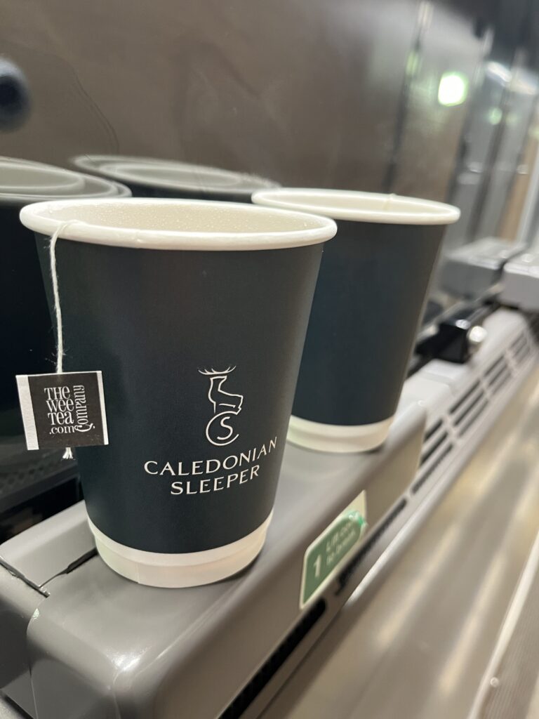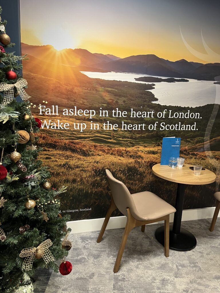 こちらのラウンジ、入り口で寝台列車へのチェックインを済ませることができ、その後は乗車までゆったりと過ごせる快適な環境となっていました。無料で提供されているのはスコットランド産のスナックや飲み物で、旅へのワクワク感が高まります。