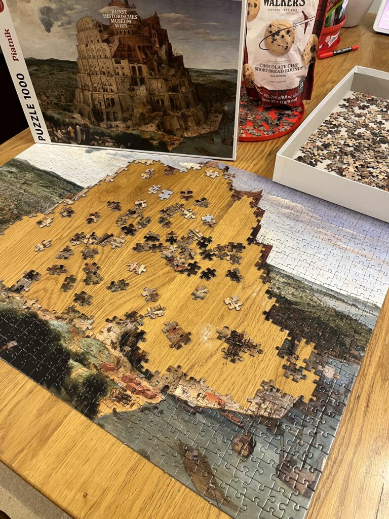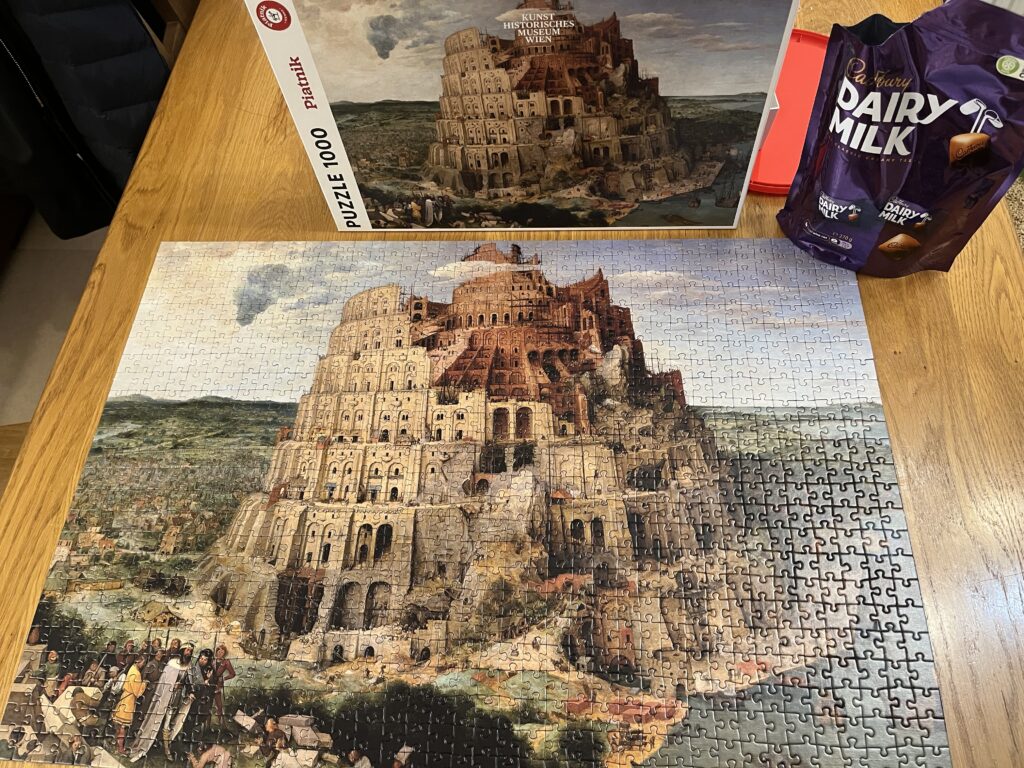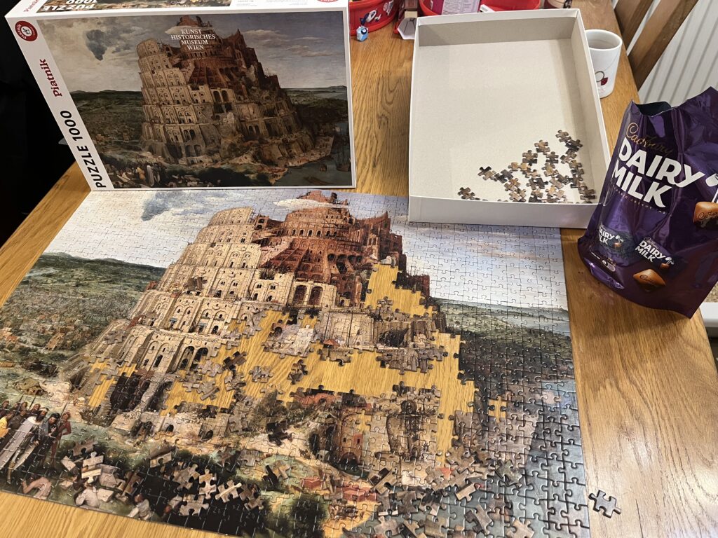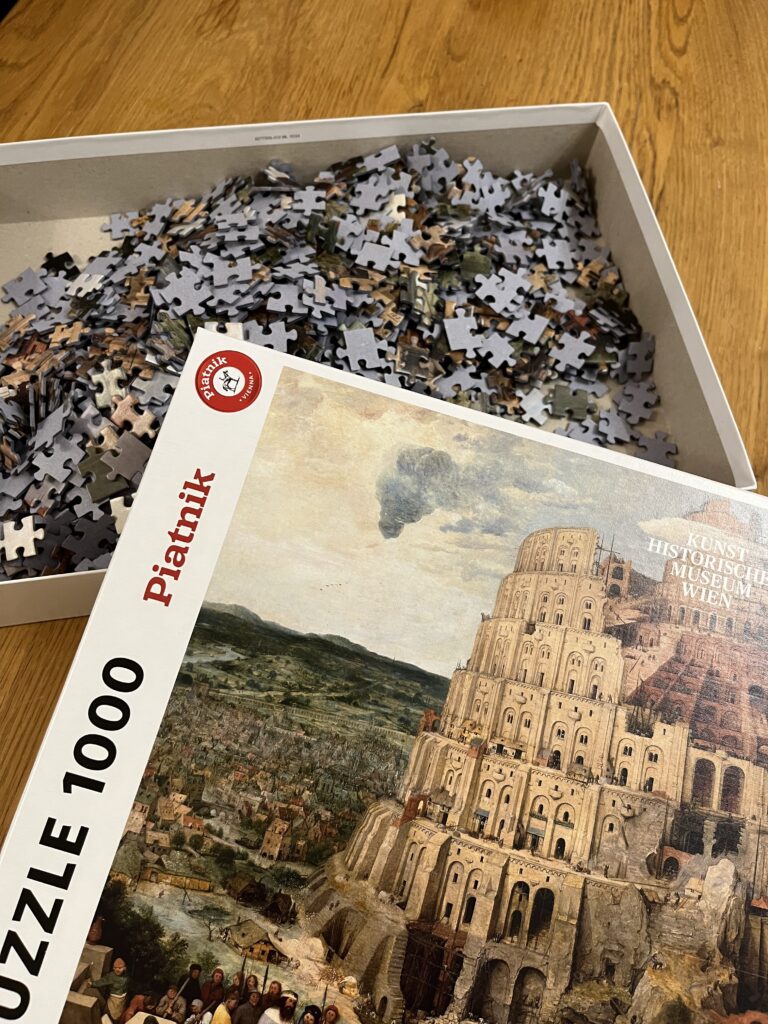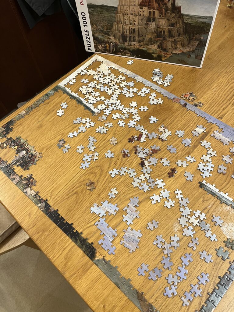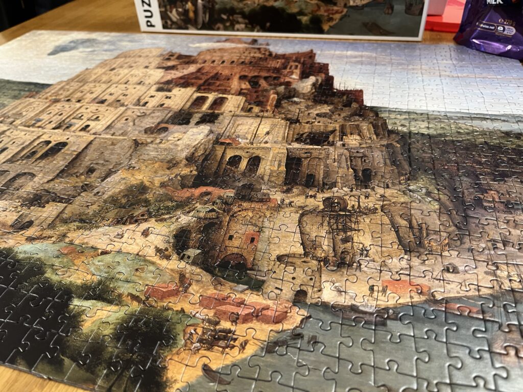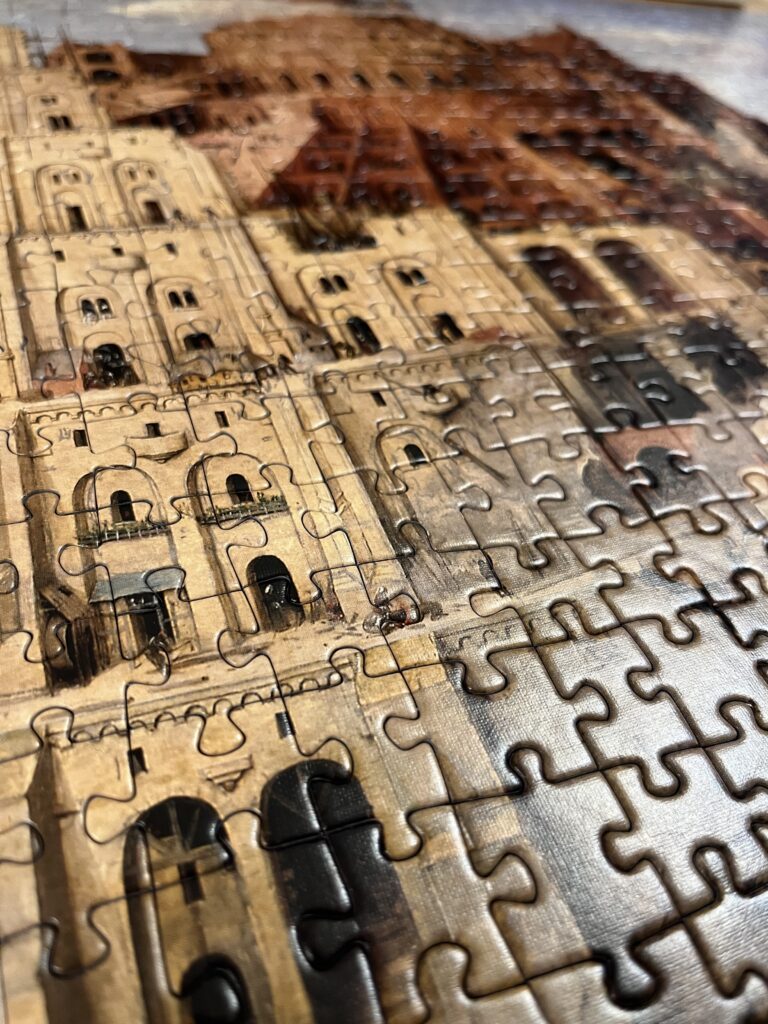 寝ても覚めてもパズルに向き合っていたわけですが、ピースを眺めながら『バベルの塔』について考えてみました。