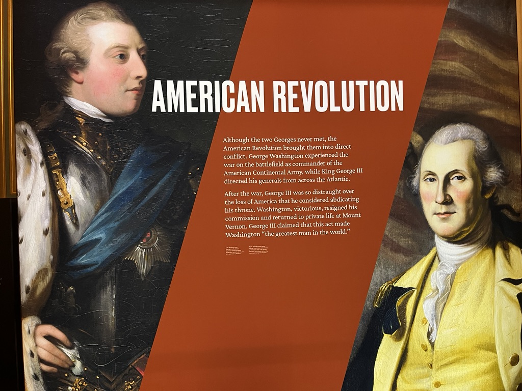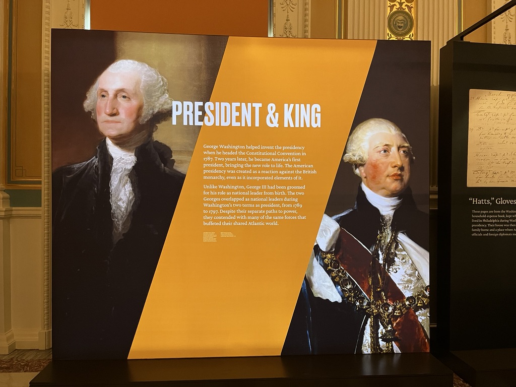 また、興味深いことに、私が訪れたタイミングで、「President & King(大統領と国王)」と題した特別展示が行われていた。そこには2人のジョージ、すなわちアメリカ初代大統領ジョージ・ワシントンと、大英帝国国王ジョージ3世が並んでいた。
